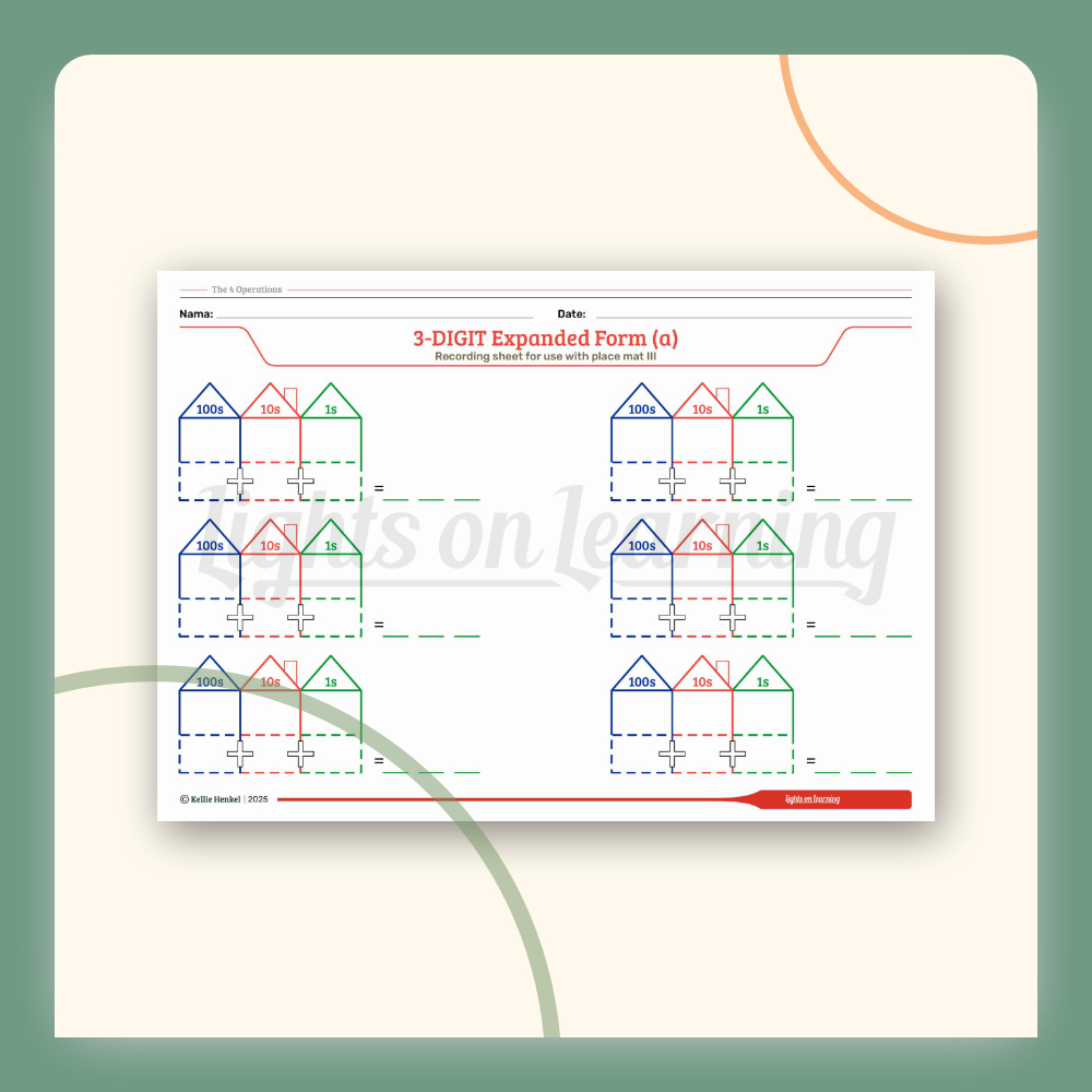 - 2 -3 digit expanded notation recording sheet